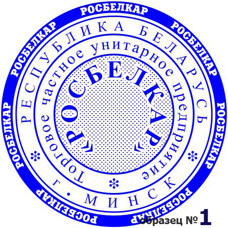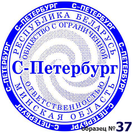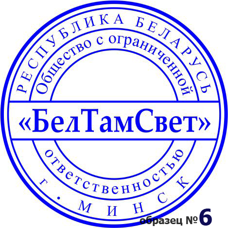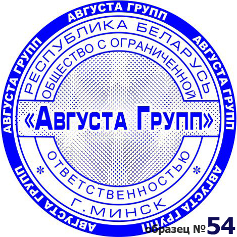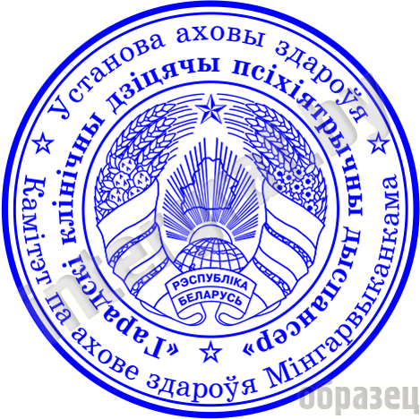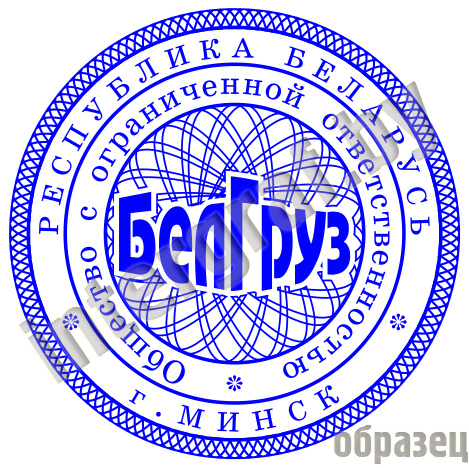 В центре печати изображают Государственный герб, а по кругу - текст. Последний состоит из наименования госорганизации на белорусском (или русском) языке, и слов «Республика Беларусь».
